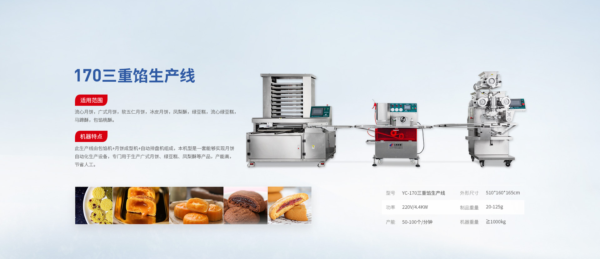 適用范圍:可適用于:500/1000/1500g大月餅等烘烤類產品、火鍋類產品、蒸煮類產品、早餐類產品等